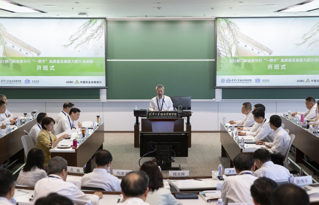 7月11日,農發(fā)行總行部門和省級分行“一把手”高質量發(fā)展能力提升培訓班在清華大學正式開班??傂悬h委書記、董事長錢文揮出席開班式并作動員講話,黨委副書記、行長湛東升主持開班式,清華大學黨委副書記向波濤、清華大學經濟管理學院院長助理遲巍應邀出席開班式。本期培訓班是在開展學習貫徹習近平新時代中國特色社會主義思想主題教育的背景下,有效推動黨的二十大各項決策部署落實落地的重要舉措,也是扎實推進人才強行工程、助力農發(fā)行高質量發(fā)展和現代化建設的關鍵一環(huán)。