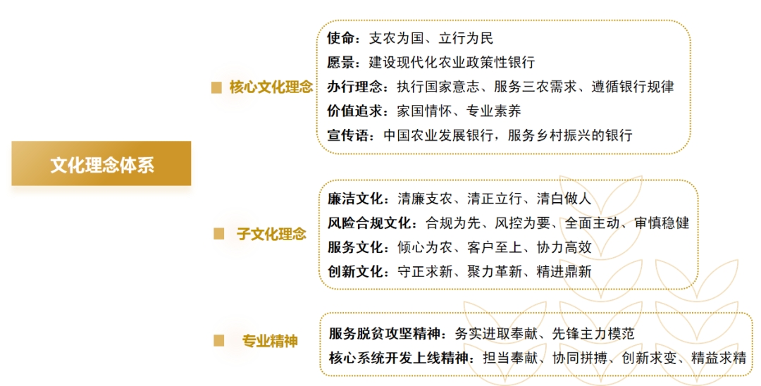 文化理念體系是企業(yè)文化建設的核心,是全行員工日常工作和行為的最高行動綱領,是員工樹立共享價值觀的重要前提。