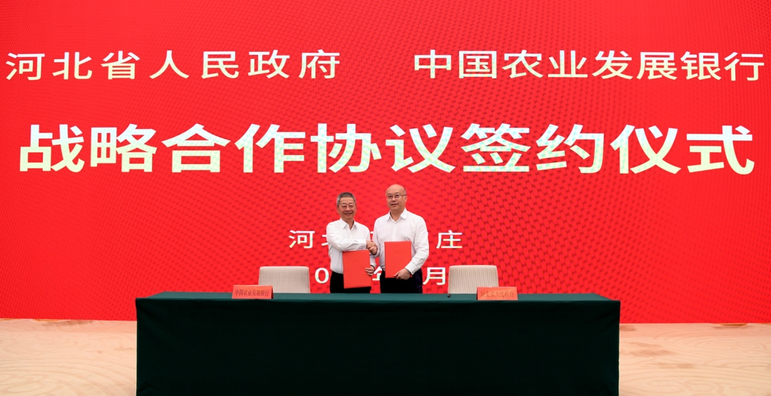 9月24日,中國農(nóng)業(yè)發(fā)展銀行與河北省人民政府在石家莊簽署《推進(jìn)譜寫中國式現(xiàn)代化建設(shè)河北篇章戰(zhàn)略合作協(xié)議》。農(nóng)發(fā)行黨委書記、董事長錢文揮與河北省委副書記、省長王正譜出席簽約儀式并分別代表雙方簽署協(xié)議。農(nóng)發(fā)行黨委副書記、行長湛東升,河北省政府秘書長朱浩文參加。