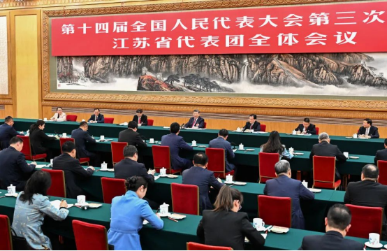 在聽取大家發(fā)言后,習(xí)近平作了發(fā)言。他首先表示贊成政府工作報(bào)告,對(duì)江蘇工作予以肯定,希望江蘇落實(shí)好挑大梁的責(zé)任,努力取得新的更大成績(jī)。