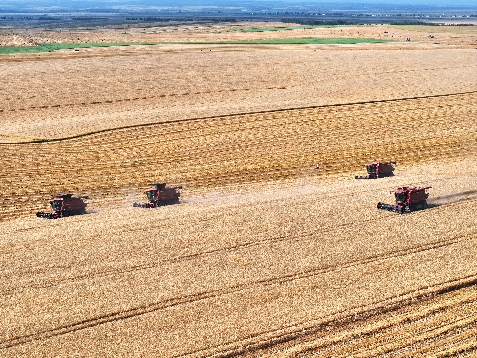 ▲伊犁昭蘇縣小麥機(jī)械化收割
