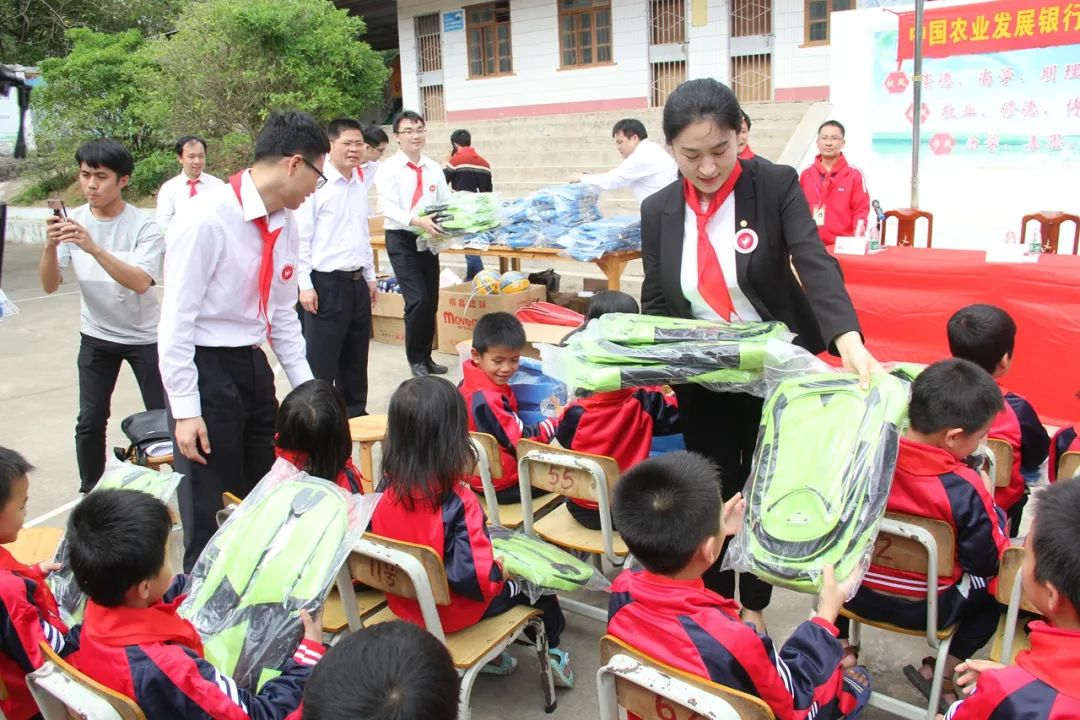 ▲廣東分行在丁堡鎮(zhèn)開展“粵青服務(wù),農(nóng)發(fā)有愛”愛心助學(xué)活動
