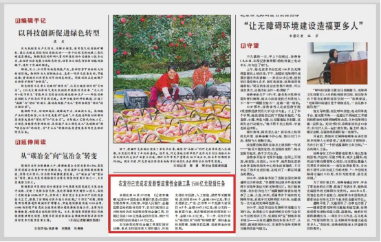 人民日報:農(nóng)發(fā)行已完成農(nóng)發(fā)新型政策性金融工具1500億元投放任務(wù)