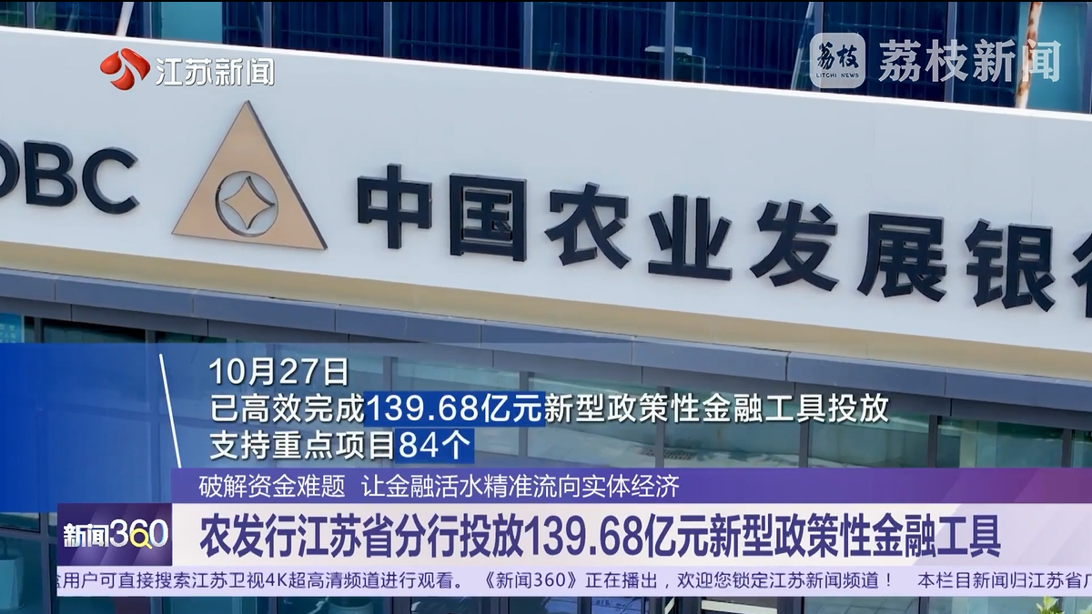 3、江蘇省分行:江蘇新聞《農發(fā)行江蘇省分行投放139.68億元新型政策性金融工具,為江蘇穩(wěn)經濟注入強引擎》
