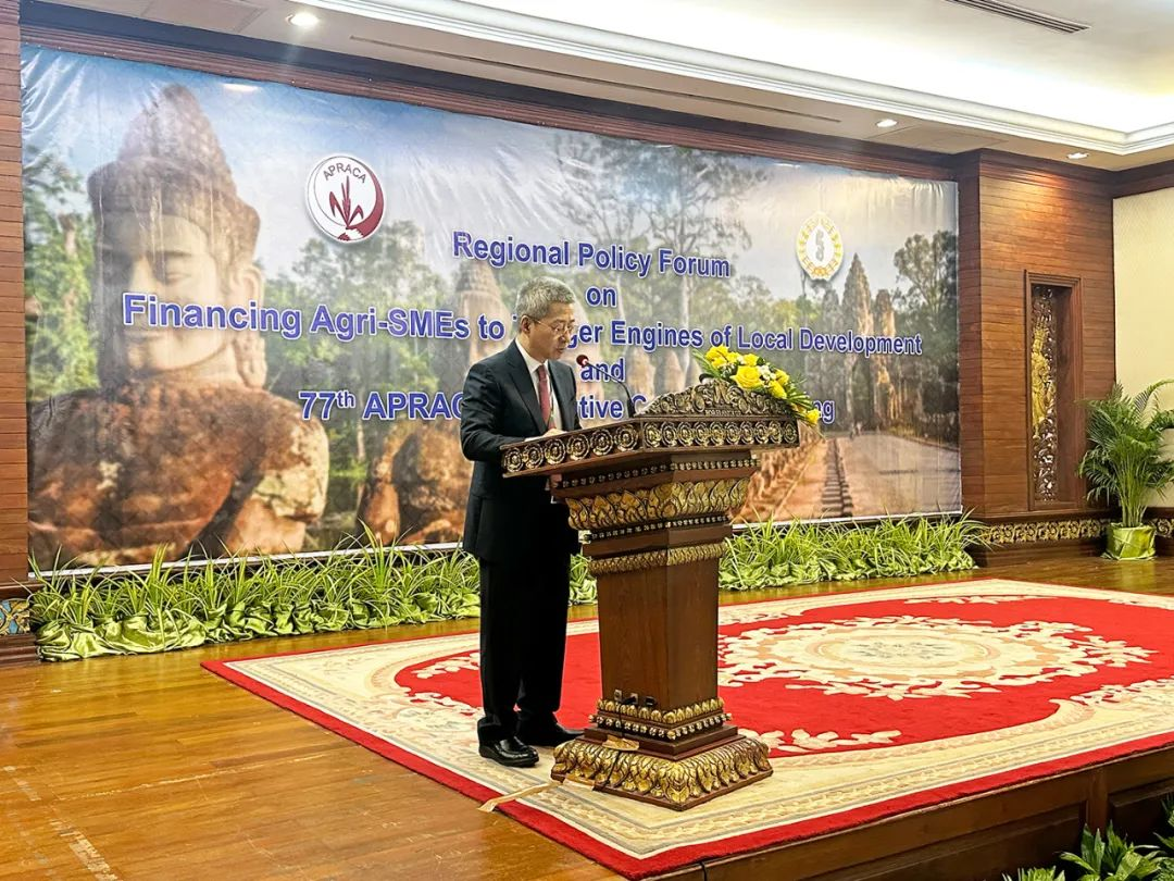 8月8日,由亞太農(nóng)村及農(nóng)業(yè)信貸協(xié)會(huì)(簡(jiǎn)稱亞太農(nóng)協(xié))主辦、柬埔寨國(guó)家銀行承辦的亞太農(nóng)協(xié)第77屆執(zhí)委會(huì)會(huì)議暨“金融支持中小農(nóng)企,推動(dòng)當(dāng)?shù)匕l(fā)展”地區(qū)政策論壇在柬埔寨暹粒舉行。中國(guó)農(nóng)業(yè)發(fā)展銀行董事長(zhǎng)錢文揮作為亞太農(nóng)協(xié)主席出席地區(qū)政策論壇并致歡迎辭,主持執(zhí)委會(huì)會(huì)議并致開(kāi)幕辭和閉幕辭。協(xié)會(huì)各成員機(jī)構(gòu)代表參會(huì)。