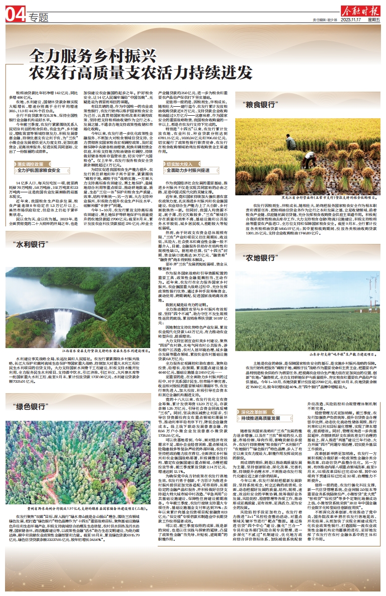 可以說(shuō),隨著服務(wù)國(guó)家戰(zhàn)略和“三農(nóng)”發(fā)展的能力逐步增強(qiáng),以及在“三農(nóng)”領(lǐng)域的投入總量、市場(chǎng)份額、導(dǎo)向作用、影響貢獻(xiàn)穩(wěn)步提升,農(nóng)發(fā)行持續(xù)擦亮“糧食銀行”“水利銀行”“農(nóng)地銀行”“綠色銀行”特色品牌,步入了有史以來(lái)支農(nóng)力度最大、職能作用發(fā)揮最突出的階段。