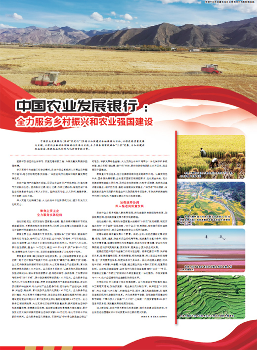 中國農(nóng)業(yè)發(fā)展銀行(簡稱“農(nóng)發(fā)行”)堅持以加快建設(shè)金融強國為目標,以推進高質(zhì)量發(fā)展為主題,以深化金融供給側(cè)結(jié)構(gòu)性改革為主線,全力服務(wù)國家戰(zhàn)略和“三農(nóng)”發(fā)展,為加快建設(shè)農(nóng)業(yè)強國、推進農(nóng)業(yè)農(nóng)村現(xiàn)代化持續(xù)貢獻力量。