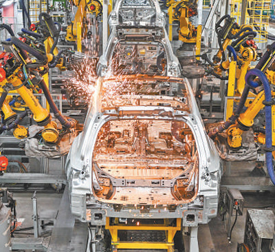 江蘇常州理想汽車智能制造基地總裝車間,機械臂正進行焊接作業(yè)。