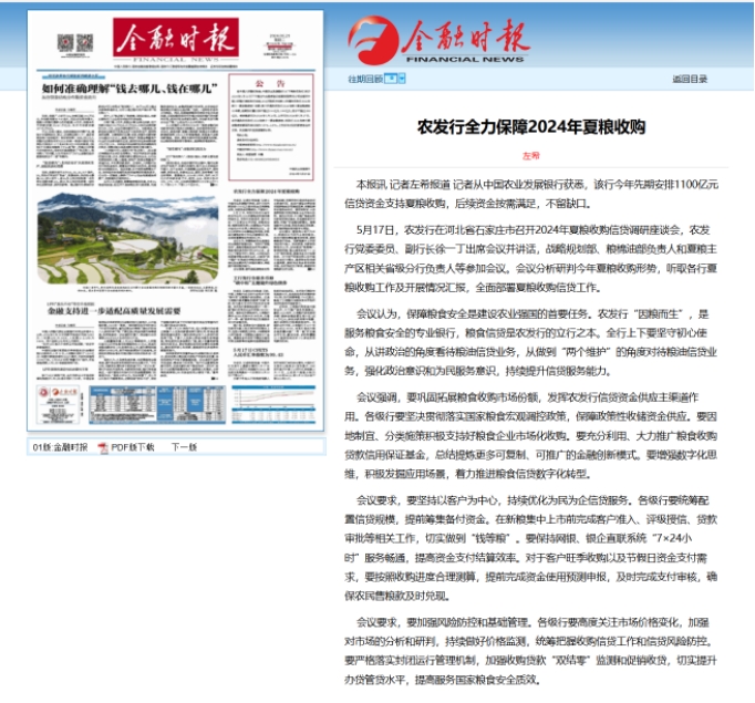 會(huì)議強(qiáng)調(diào),要鞏固拓展糧食收購(gòu)市場(chǎng)份額,發(fā)揮農(nóng)發(fā)行信貸資金供應(yīng)主渠道作用。各級(jí)行要堅(jiān)決貫徹落實(shí)國(guó)家糧食宏觀調(diào)控政策,保障政策性收儲(chǔ)資金供應(yīng)。要因地制宜、分類施策積極支持好糧食企業(yè)市場(chǎng)化收購(gòu)。要充分利用、大力推廣糧食收購(gòu)貸款信用保證基金,總結(jié)提煉更多可復(fù)制、可推廣的金融創(chuàng)新模式。要增強(qiáng)數(shù)字化思維,積極發(fā)掘應(yīng)用場(chǎng)景,著力推進(jìn)糧食信貸數(shù)字化轉(zhuǎn)型。