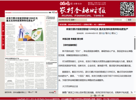 數(shù)據(jù)顯示,截至3月20日,該行已累計投放貸款超過1200億元,重點支持科技育種和化肥生產(chǎn)。據(jù)悉,“十四五”期間,農(nóng)發(fā)行將累計安排不低于1000億元投貸聯(lián)動資金,為現(xiàn)代種業(yè)高質量發(fā)展提供長期穩(wěn)定的金融服務。