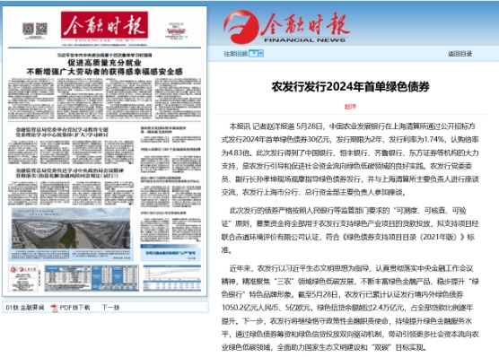 本報訊 記者趙洋報道 5月28日,中國農(nóng)業(yè)發(fā)展銀行在上海清算所通過公開招標(biāo)方式發(fā)行2024年首單綠色債券30億元,發(fā)行期限為2年,發(fā)行利率為1.74%,認(rèn)購倍率為4.83倍。此次發(fā)行得到了中國銀行、恒豐銀行、齊魯銀行、東方證券等機(jī)構(gòu)的大力支持,是農(nóng)發(fā)行引導(dǎo)和促進(jìn)社會資金流向綠色低碳領(lǐng)域的良好實(shí)踐。農(nóng)發(fā)行黨委委員、副行長孫孝坤現(xiàn)場觀摩指導(dǎo)綠色債券發(fā)行,并與上海清算所主要負(fù)責(zé)人進(jìn)行座談交流,農(nóng)發(fā)行上海市分行、總行資金部主要負(fù)責(zé)人參加座談。