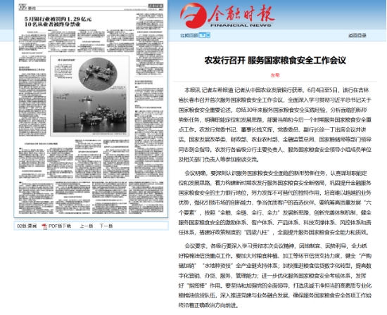 本報訊 記者左希報道 記者從中國農(nóng)業(yè)發(fā)展銀行獲悉,6月4日至5日,該行在吉林省長春市召開首次服務國家糧食安全工作會議,全面深入學習貫徹習近平總書記關于國家糧食安全重要論述,總結30年來服務國家糧食安全實踐經(jīng)驗,分析面臨的新形勢新任務,明確職能定位和發(fā)展思路,部署當前和今后一個時期服務國家糧食安全重點工作。農(nóng)發(fā)行黨委書記、董事長錢文揮,黨委委員、副行長徐一丁出席會議并講話,國家發(fā)展改革委、財政部、農(nóng)業(yè)農(nóng)村部、金融監(jiān)管總局、國家糧儲局等部門領導同志到會指導。農(nóng)發(fā)行各省級分行主要負責人、服務國家糧食安全領導小組成員單位及相關部門負責人等參加座談交流。