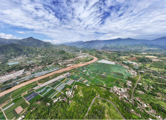 2025年7月9日拍攝的四川省攀枝花市米易縣撒蓮鎮(zhèn)安全村高標(biāo)準(zhǔn)農(nóng)田(無人機(jī)照片)。新華社記者 江宏景 攝