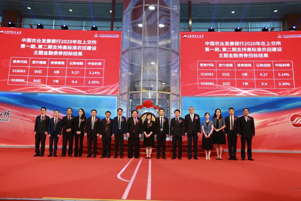 8月26日上午,中國農(nóng)業(yè)發(fā)展銀行(以下簡稱農(nóng)發(fā)行)在上海證券交易所以公開招標方式,面向境內(nèi)外投資者成功發(fā)行5年期、7年期支持高標準農(nóng)田建設主題金融債券各50億元,共計100億元。這也是農(nóng)發(fā)行2020年首次在交易所發(fā)行金融債券,獲得投資者的踴躍認購。兩期債券發(fā)行利率分別為3.14%、3.3%,低于前一日中債同期限債券估值36BP、14BP,認購倍率分別為9.27倍、9.4倍。農(nóng)發(fā)行總行黨委委員張文才現(xiàn)場觀摩指導。