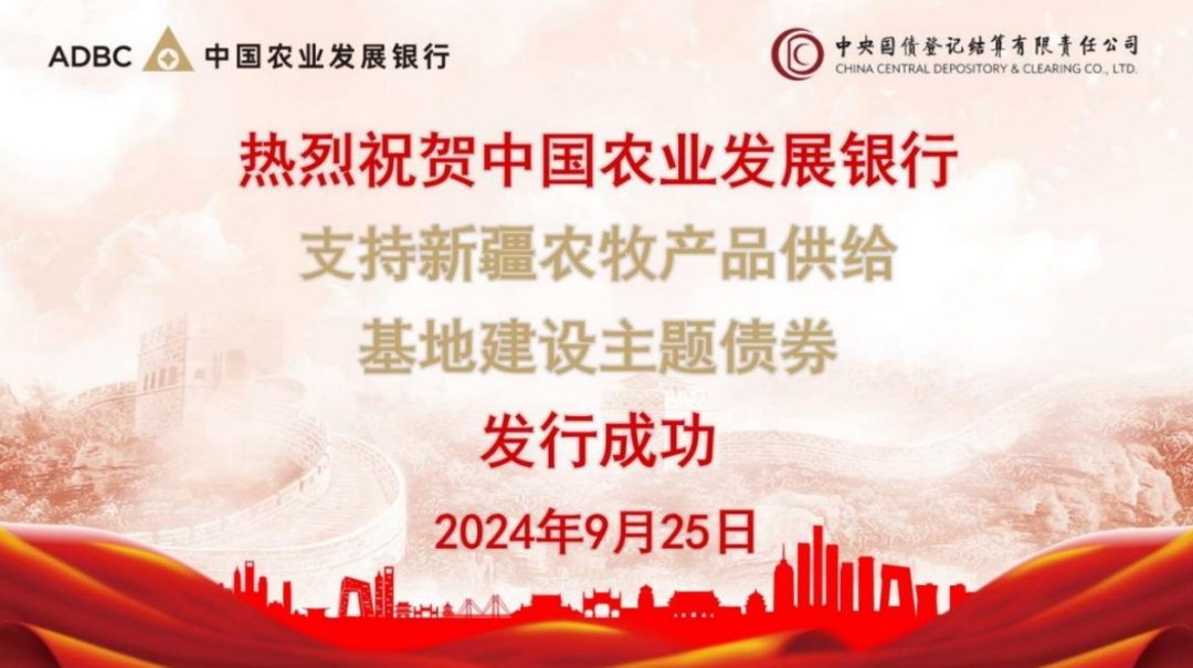 9月25日,中國(guó)農(nóng)業(yè)發(fā)展銀行在中央結(jié)算公司以公開(kāi)招標(biāo)方式,面向全球投資者成功發(fā)行1年期支持新疆農(nóng)牧產(chǎn)品供給基地建設(shè)主題債券110億元,發(fā)行利率1.4065%,認(rèn)購(gòu)倍率2.04倍,受到了九江銀行、光大銀行、北京銀行、寧波銀行、中信銀行等機(jī)構(gòu)的大力支持。該期債券募集資金主要用于支持新疆糧棉收購(gòu)、農(nóng)地、畜牧及重要農(nóng)產(chǎn)品等領(lǐng)域的貸款投放。