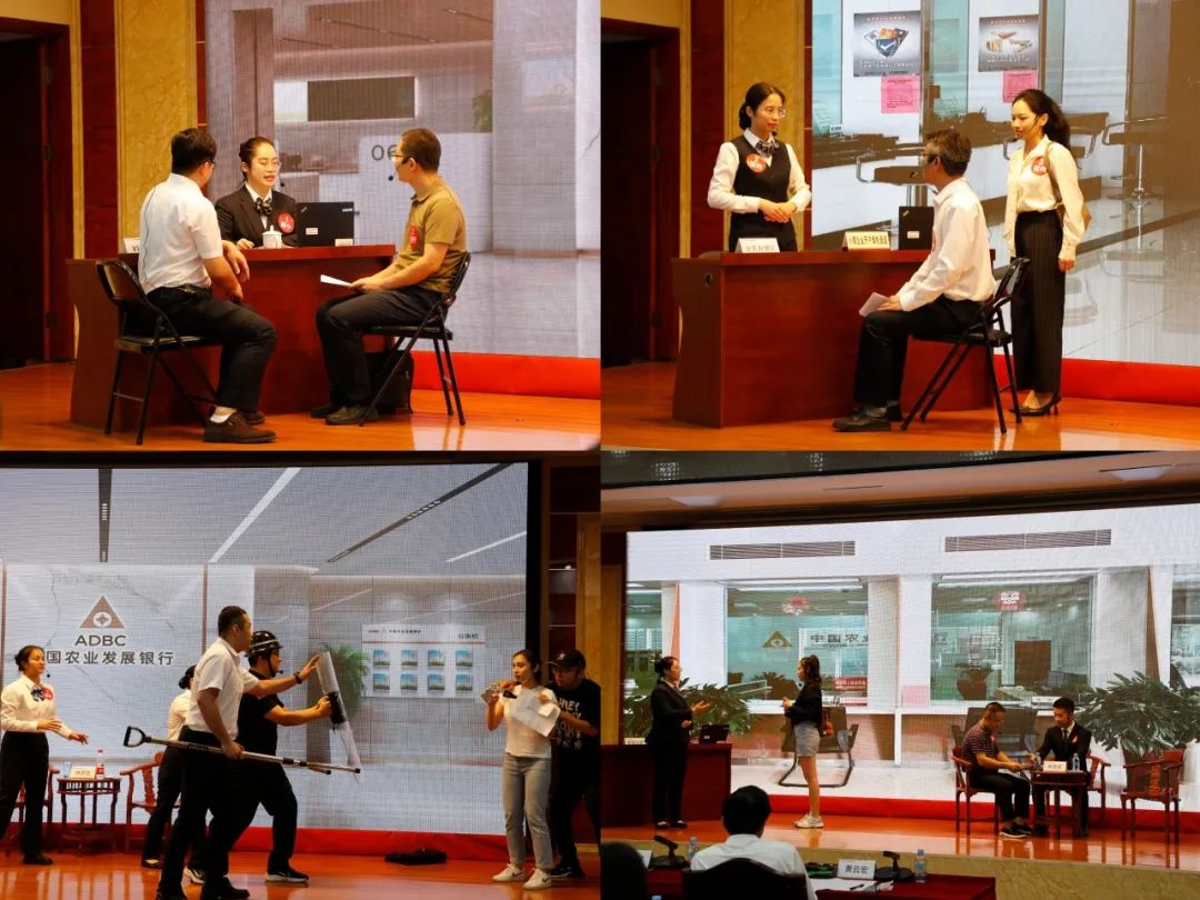 本次競賽分為運(yùn)營管理網(wǎng)絡(luò)知識競賽、現(xiàn)場知識競賽和業(yè)務(wù)情景模擬競賽三個(gè)部分?,F(xiàn)場知識競賽設(shè)置了必答題、挑戰(zhàn)題、風(fēng)險(xiǎn)題和觀眾互動四個(gè)環(huán)節(jié),題目涉及支付結(jié)算、運(yùn)營大集中、柜面服務(wù)、渠道業(yè)務(wù)等多項(xiàng)內(nèi)容。競賽現(xiàn)場緊張有序、精彩紛呈,各代表隊(duì)精神飽滿、沉著應(yīng)戰(zhàn)、對答如流,展現(xiàn)了良好的精神風(fēng)貌和扎實(shí)的理論功底。業(yè)務(wù)情景模擬競賽更是將現(xiàn)場的氛圍一次次推向高潮,各代表隊(duì)?wèi){借豐富多彩的創(chuàng)意、活靈活現(xiàn)的表演,生動形象的還原了柜面業(yè)務(wù)中的各種場景,每隊(duì)的表演都引來觀眾掌聲連連,營造了熱烈活潑的現(xiàn)場氛圍。