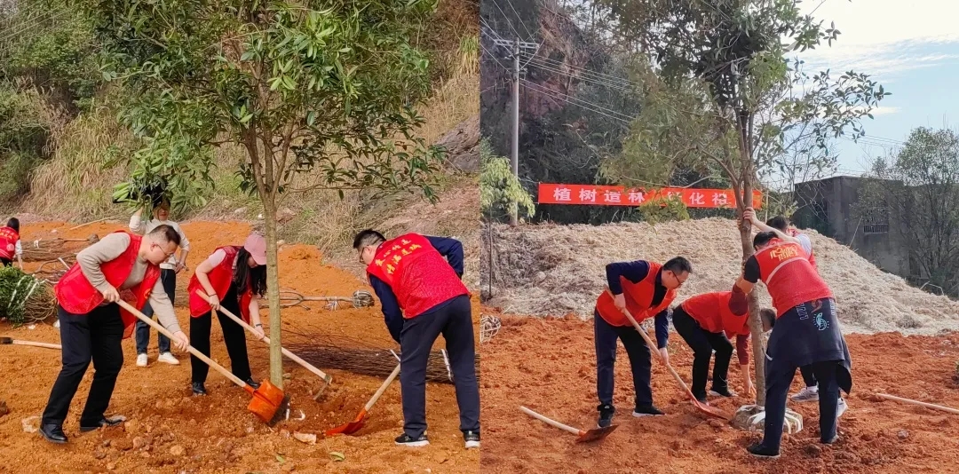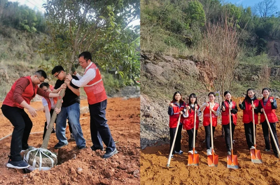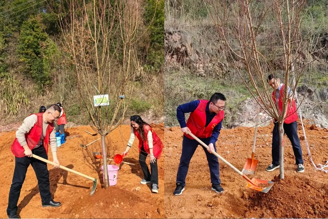 活動現(xiàn)場,志愿者們分工明確,以2-3人為小組,揮鍬挖坑、扶苗填土、踩實(shí)固苗、提水灌溉,活動現(xiàn)場熱火朝天。大家默契配合、通力協(xié)作,接連種下桂花樹、桃樹、四季青等20株樹木,讓原本空曠荒涼的黃土地變成了一片綠意盎然的“農(nóng)發(fā)行青年林”。此次青年林建設(shè)活動,既是深入學(xué)習(xí)貫徹習(xí)近平總書記關(guān)于“綠水青山就是金山銀山,堅(jiān)定不移走生態(tài)優(yōu)先、綠色發(fā)展之路”等系列習(xí)近平生態(tài)文明思想的生動實(shí)踐,也是湖南分行青年員工開展綠色低碳活動、匯聚生態(tài)文明建設(shè)正能量的青春行動,極大增強(qiáng)了青年員工的社會責(zé)任感和生態(tài)保護(hù)意識,較好的展現(xiàn)了青年員工良好精神風(fēng)貌。