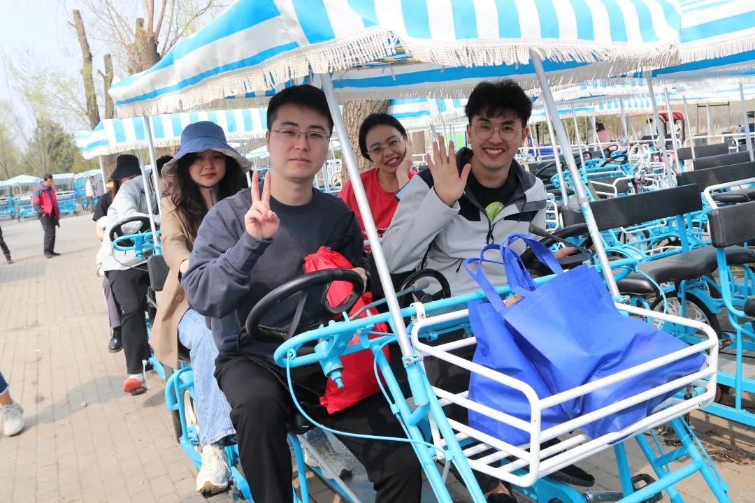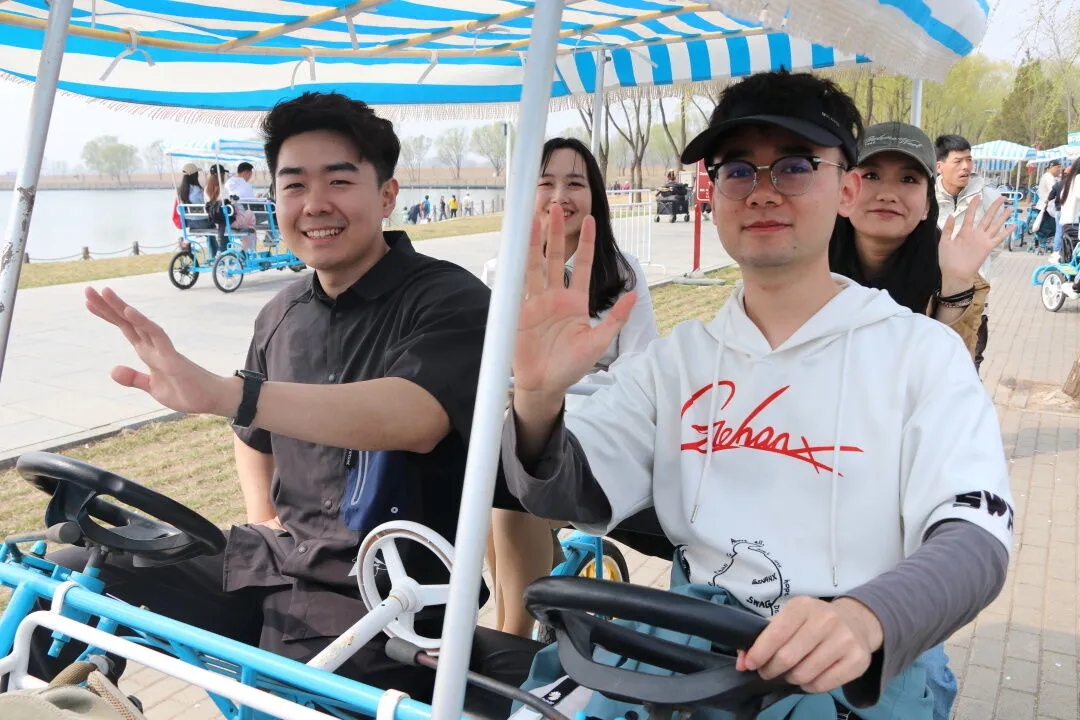 參加活動的青年們開展了形式多樣的交流,大家每四人一組乘坐一輛腳踏車繞湖騎行暢談人生理想,還通過踢毽子、拋飛盤等文體活動加深了解,歡聲笑語此起彼伏,交談交心深度互動,現(xiàn)場洋溢著輕松歡快、奮發(fā)向上的青春氛圍。
