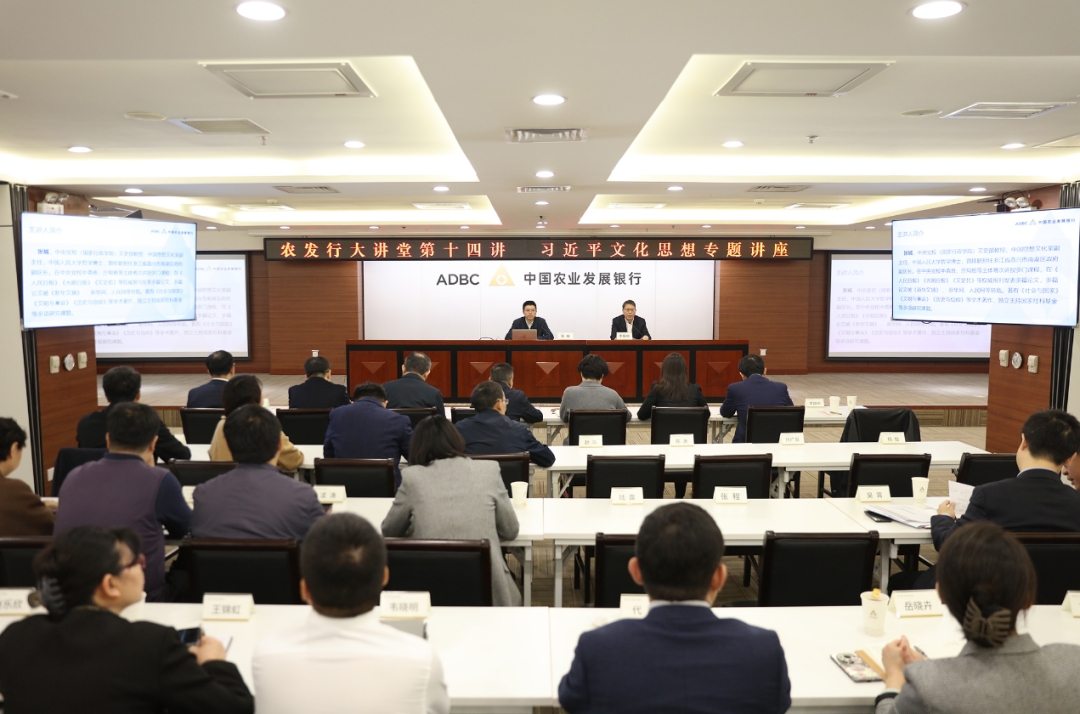 近日,農(nóng)發(fā)行舉辦2024年第十四期“農(nóng)發(fā)行大講堂”,邀請中央黨校(國家行政學院)文史部教授張城作“習近平文化思想”專題講座。駐行紀檢監(jiān)察組、總行各部室、直管直屬機構負責人及員工在總行報告廳參加講座。