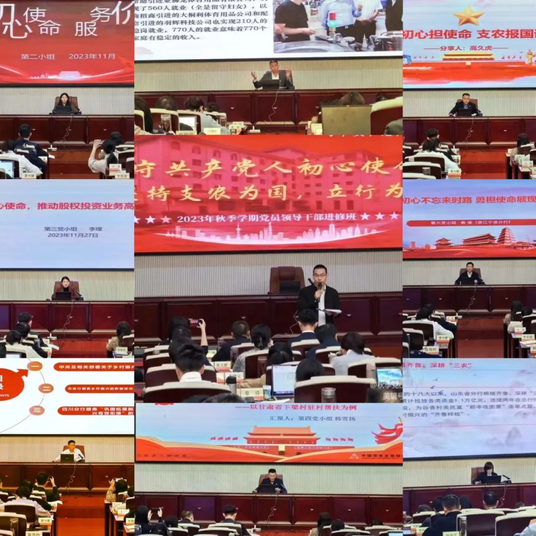 支部書記姜新春,為大家分享了他在錦屏掛職的點點滴滴,用自己的實際行動譜寫了一曲鞏固同拓展脫貧攻堅成果與鄉(xiāng)村振興銜接融合的時代樂章。其他學(xué)員結(jié)合本省實際,從鞏固拓展脫貧攻堅成果與鄉(xiāng)村振興有效銜接、農(nóng)發(fā)行價值管理、股權(quán)投資業(yè)務(wù)高質(zhì)量發(fā)展、駐村幫扶故事等多角度、多維度系統(tǒng)、全面、深刻的闡述對 “不忘初心、牢記使命”理解和認識,深入思考新時代農(nóng)發(fā)行人如何勇?lián)姑宫F(xiàn)作為。