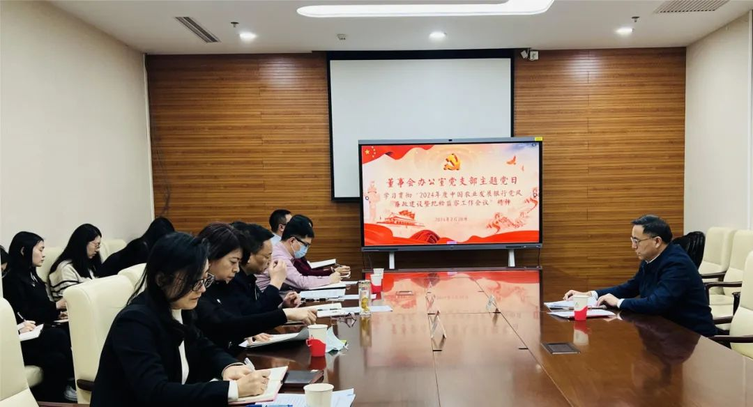 為扎實推進(jìn)全面從嚴(yán)管黨治行向縱深發(fā)展、持續(xù)做好支部黨風(fēng)廉政建設(shè)工作,近日,總行董事會辦公室黨支部組織召開全體黨員大會,傳達(dá)學(xué)習(xí)全行2024年度黨風(fēng)廉政建設(shè)暨紀(jì)檢監(jiān)察工作會議精神,研究部署2024年度支部黨風(fēng)廉政建設(shè)工作。支部書記董仕軍主持會議,全體黨員參加會議。