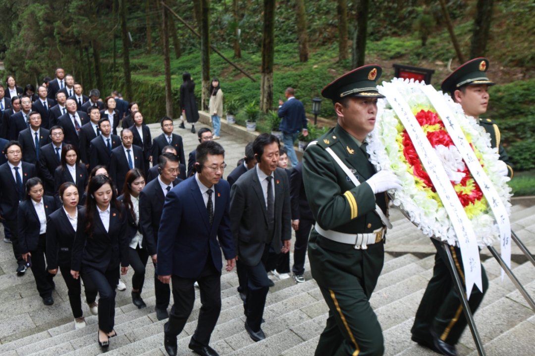 浩然英雄氣,激蕩天地間。穿過花壇園庭,順山而上的臺階分為兩組,第一組49級,象征1949年新中國成立,第二組60級,寓意陵園在井岡山革命根據(jù)地創(chuàng)建六十周年時建成。臺階兩側(cè)的柏樹四季常青,莊重而肅穆。登上寬闊的臺階進(jìn)入紀(jì)念堂,“井岡山根據(jù)地革命先烈永垂不朽”的題字映入眼簾。在紀(jì)念堂吊唁大廳,學(xué)員們向革命烈士敬獻(xiàn)花籃并行三鞠躬禮,深切表達(dá)對先烈們的敬仰與懷念。瞻仰結(jié)束后,學(xué)員們在紀(jì)念堂前莊重地重溫入黨誓詞,錚錚誓言,鏗鏘有力。