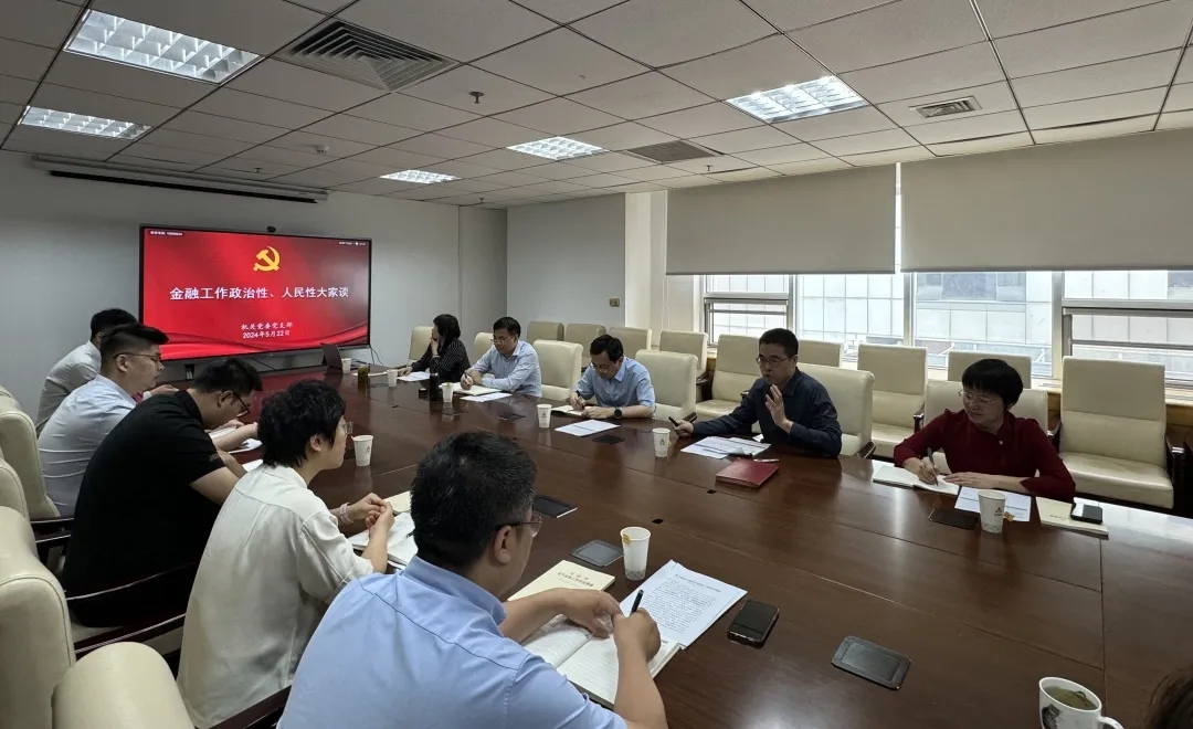 5月22日,總行機(jī)關(guān)黨委黨支部組織開展“金融工作政治性、人民性大家談”活動(dòng)。繼年初圍繞學(xué)習(xí)貫徹中央金融工作會(huì)議精神開展研討后,結(jié)合學(xué)習(xí)宣傳貫徹《習(xí)近平關(guān)于金融工作論述摘編》,機(jī)關(guān)黨委黨支部聚焦金融工作政治性、人民性再次組織專題交流,不斷加深全體黨員對(duì)中國特色社會(huì)主義金融本質(zhì)的認(rèn)識(shí),深化對(duì)農(nóng)發(fā)行政策性銀行職能定位的認(rèn)識(shí)理解,強(qiáng)化使命擔(dān)當(dāng)、忠誠履職盡責(zé)。