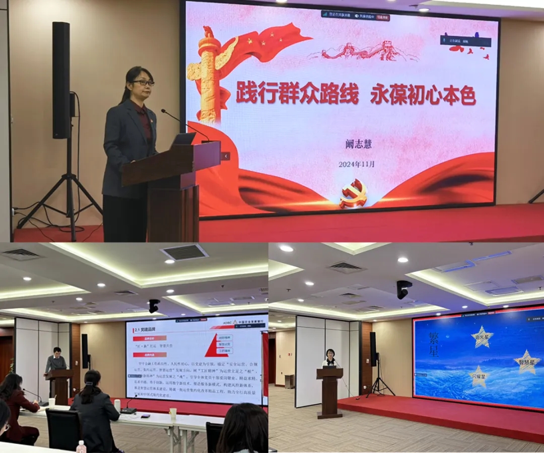最后,第一黨支部代表以“‘匠·新’紅運(yùn) 智慧共營(yíng)”為主題宣講了支部黨建品牌“匠·新”,從創(chuàng)新精神、智慧運(yùn)營(yíng)和工匠精神三個(gè)維度深入解讀黨建引領(lǐng)樹“匠心”、健全機(jī)制鑄“匠器”、搭建平臺(tái)塑“匠藝”、真抓實(shí)干踐“匠行”、賦能成長(zhǎng)育“匠人”的品牌理念,以黨建品牌創(chuàng)建為抓手,鑄就一批運(yùn)營(yíng)集約改革精品工程,助力全行高質(zhì)量發(fā)展。青年工作代表以“青春向黨 ‘繁星’璀璨”為主題宣講了黨總支部青年工作品牌“繁星”,從代表指引的“追光星”、代表知識(shí)的“智慧星”和代表光芒的 “閃耀星”三方面介紹了“繁星”品牌內(nèi)涵,鼓勵(lì)年輕干部挑戰(zhàn)自我、表達(dá)觀點(diǎn)、展現(xiàn)才華。